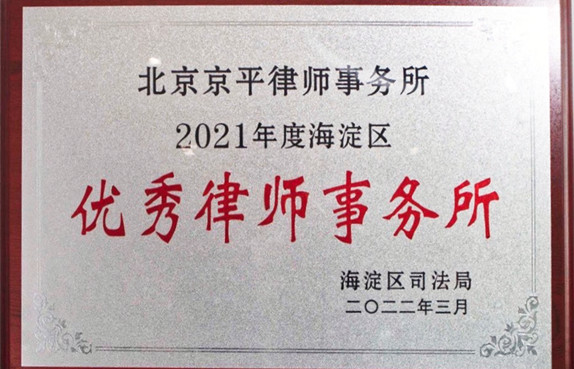北京京平律師事務(wù)所榮獲2022年度海淀區(qū)“優(yōu)秀律師事務(wù)所”稱號