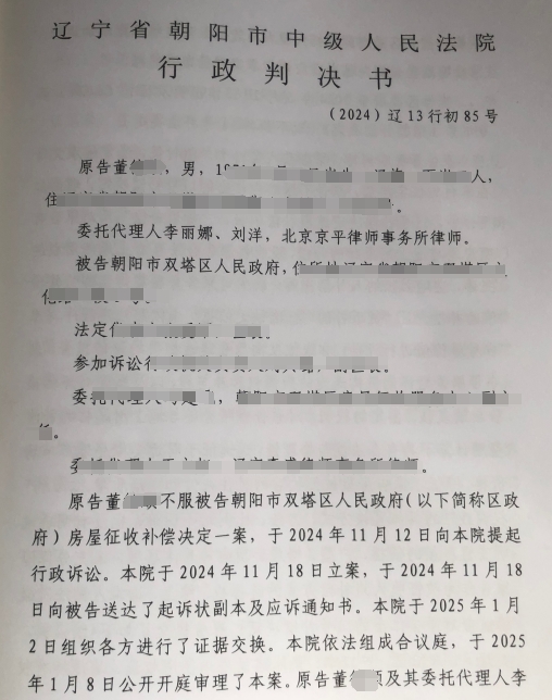 原告董某某在雙塔區(qū)凌鳳街道八寶村有繼承的兩處有證房屋。2022年11月25日,區(qū)政府發(fā)布征收土地啟動公告,其房屋在征收
